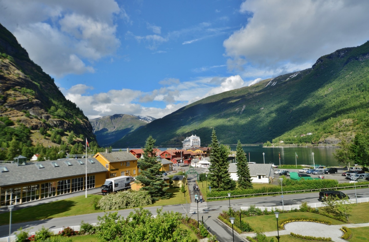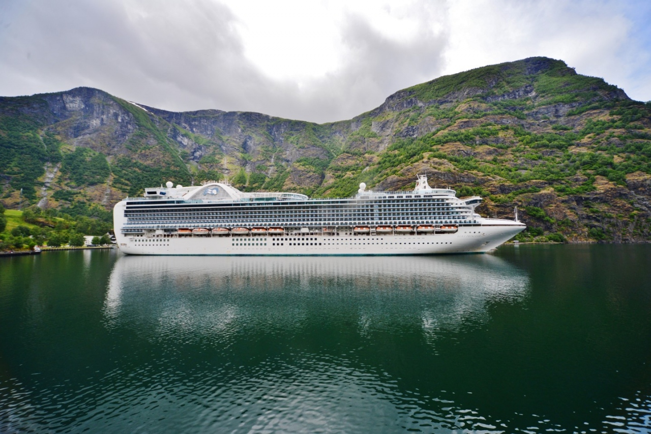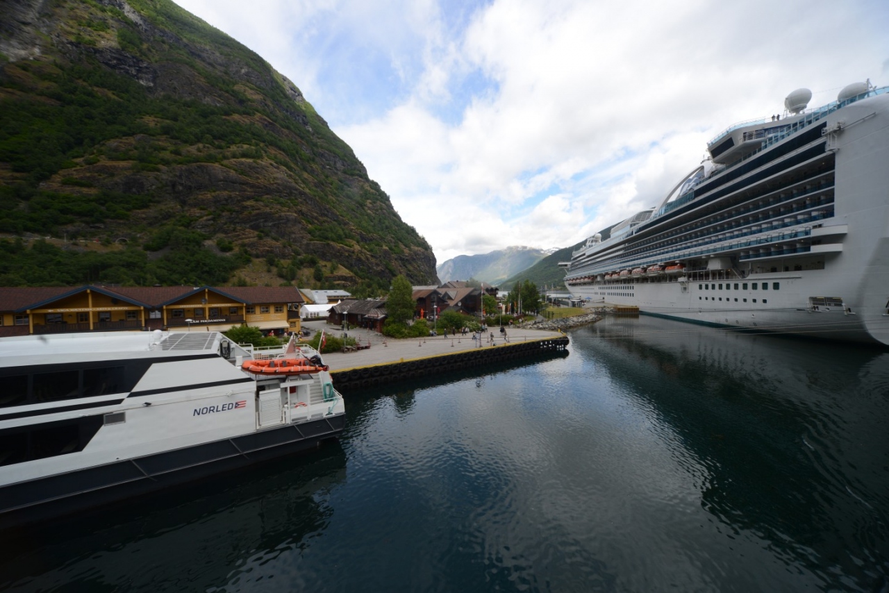 大型客船Ruby Princess寄港 フロム・グドバンゲン間フェリー、フロム鉄道が発着する観光の拠点港