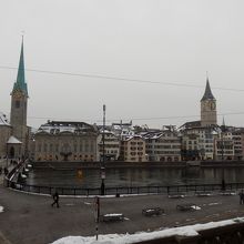 写真右側が聖ペーター教会で左側がフラウミュンスターです。