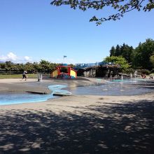 道を進んでいくと、所々に子供が遊べる公園があり、夏ですと水遊びの利用が可能です。