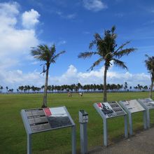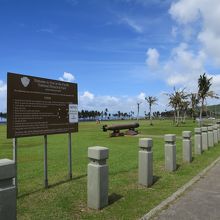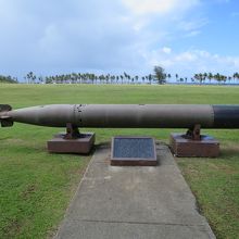 この地は太平洋戦争時に米軍が上陸し、激戦地となった場所です。公園内には魚雷や、当時の写真が展示されています。