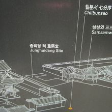 このためこの一帯は東宮とも呼ばれ、多くの建物がありましたが、重煕堂と付属する観物軒や延賢閣は1891年(高宗28)になくなり、今は重煕堂と繋がっていた六角形の建物の三三窩、その横の七分序と承華樓だけが残っています。