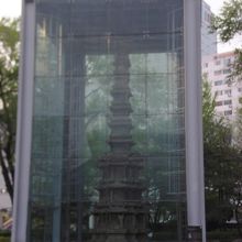 大理石製で高さは12m。3層の基壇と10層の塔身を持ち、塔身には人物や草花、龍や獅子などの文様が陽刻されています。
