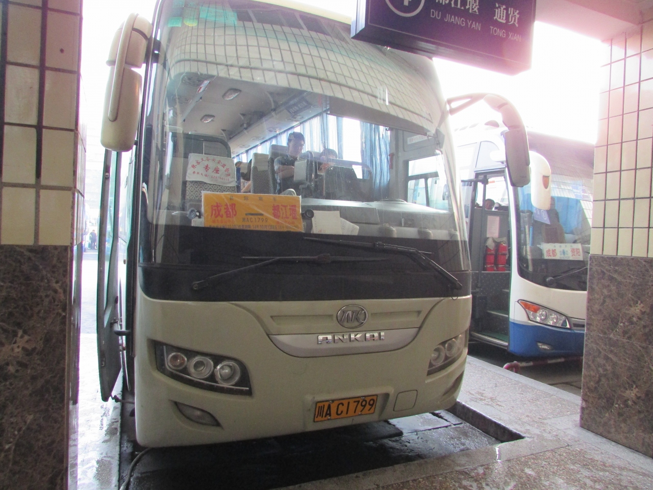成都火車北駅の西側(駅を背にして右側)にあります。都江堰に行くために利用しました(2015.04:14元)。平日朝8時出発のバスは、成都市内を出るまで渋滞にひっかかり、都江堰バスセンターまで約2時間かかりました。ちなみに、隣の火車北駅から出る新幹線(和階号)なら40分です(15元)。都江堰行きのバスは茶店子からの方が多数出ています。