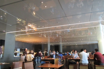 香港空港は乗継での利用でした。キャセイ・パシフィック航空のラウンジがいくつかありますが、今回は「ザ・ブリッジ」を利用してみました。前に、「ザ・ピア」を利用した時も見つからなくて探し回りましたが、今回もまた探してしまいました。かなり大きな施設なのにすぐ見つからなかったのは、どうも香港空港と私とはフィーリングが合わない様です。なお、場所はY字型のターミナル・ビルの枝分かれのところです。出国でこのターミナルに入ってくれば、正面となるのでしょう。