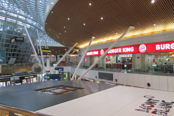 サテライト・ターミナルは十字の構造なので、見た目にはすっきりとしたレイアウトとなっています。しかし、ラウンジやレストランなどがある上の階との行き来は意外と不便で、ものすごく動きの遅いエレベータか階段の利用となりますが、数が少ないので、それなりに歩かないといけない作りになっています。利用に慣れれば最短コースが見つかるかも知れません。なお、免税店で常用してる化粧品を1つ買いましたが、値段的にはちょっと高めな感じがしました。