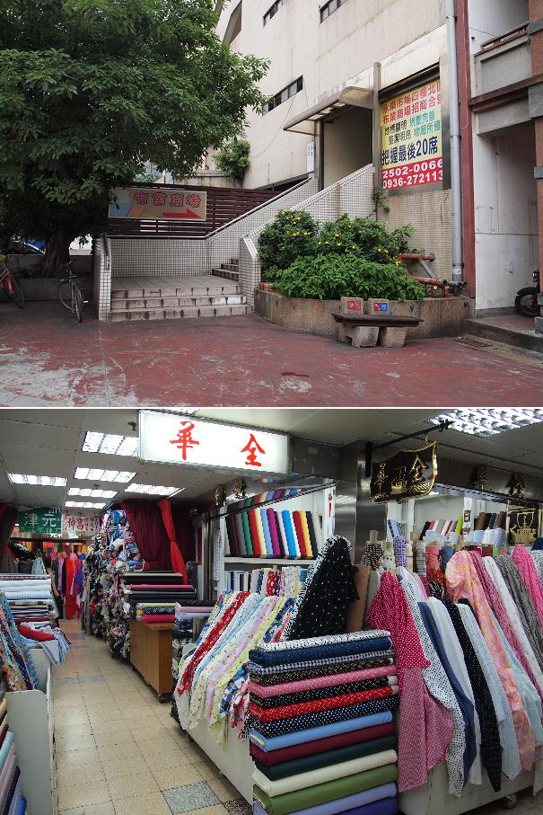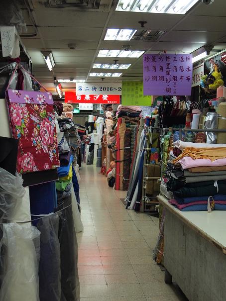 迪化街にある布市場です。入口と書かれた案内表示に従って階段を上り、2階から建物に入ると、そこにはところせましと布問屋が並んでいました。台湾らしい花柄の布もあれば、普通の布もあり、バイヤーさんらしき人が真剣に選んでいる姿も見かけました。迷路のように通路が入り組んでいて、とにかくうず高く布が積まれている光景にビックリしました。