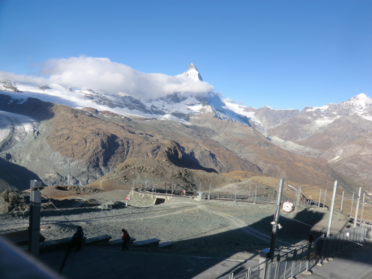 一日でゴルナーグラート展望台とグレッシャーパラダイス行く予定だったので必然的に朝早く出発しましたがこれが正解でした。朝日に映るマッターホルンは美しいし列車も空いていて座り放題(笑)でした。