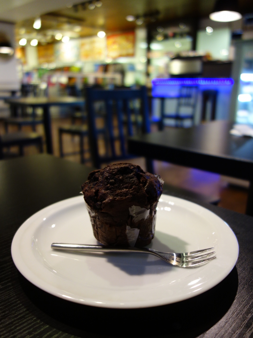 深夜、お土産屋さんもさほどないスリランカの空港で、長い待ち時間をどう過ごすか、ウロウロしてようやく落ち着きそうなカフェへ辿り着きました。お客さんは居ませんでしたが、The Coffee Bean & Tea Leafは大手コーヒーチェーン店だし、きっと無難だろうという考えで席につきました。チョコレートマフィンをいただきましたが、普通に美味しかったです。空港に大手のコーヒーチェーン店はありがたいです。