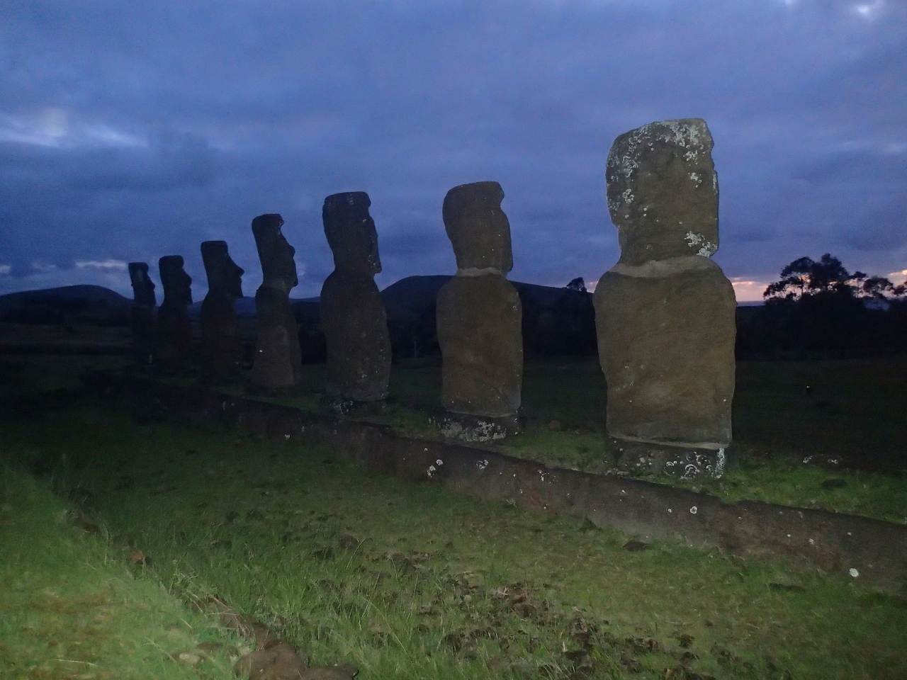 イースター島の内陸部の草地の真ん中にある7体のモアイ。