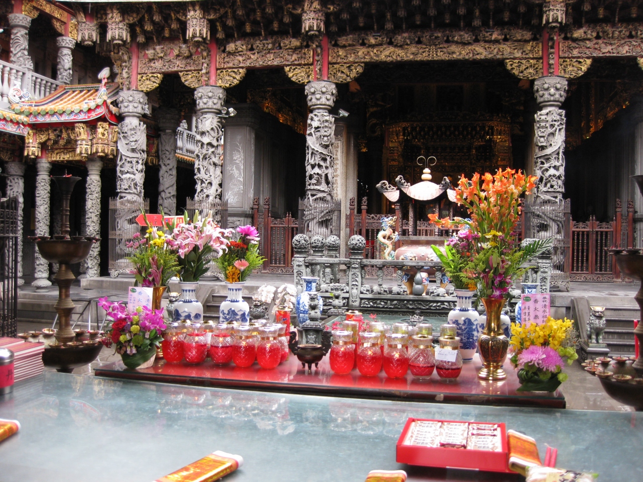 三角湧老街に行く途中で立ち寄りました。外観は普通よくある廟みたいでしたが、柱の細かな細工、また天井のきらびやかな細工など、思わず見とれてしまいました。天井の細工などは写真ではうまく取れませんでしたので、実際に行ってみて下さい。ガイドの話では”釘は一切使っていない”と言うことでした。一見の価値は大いにありです。