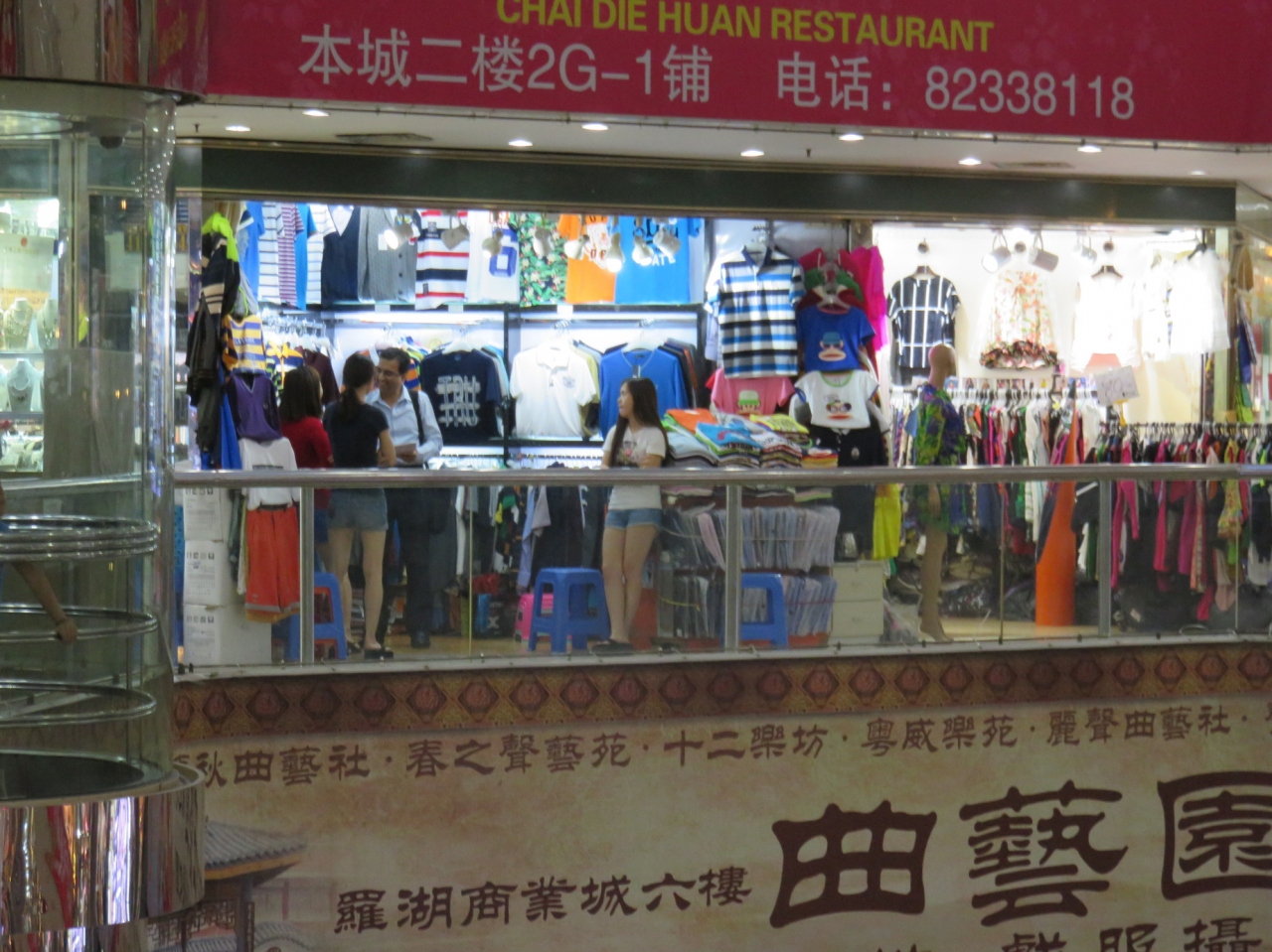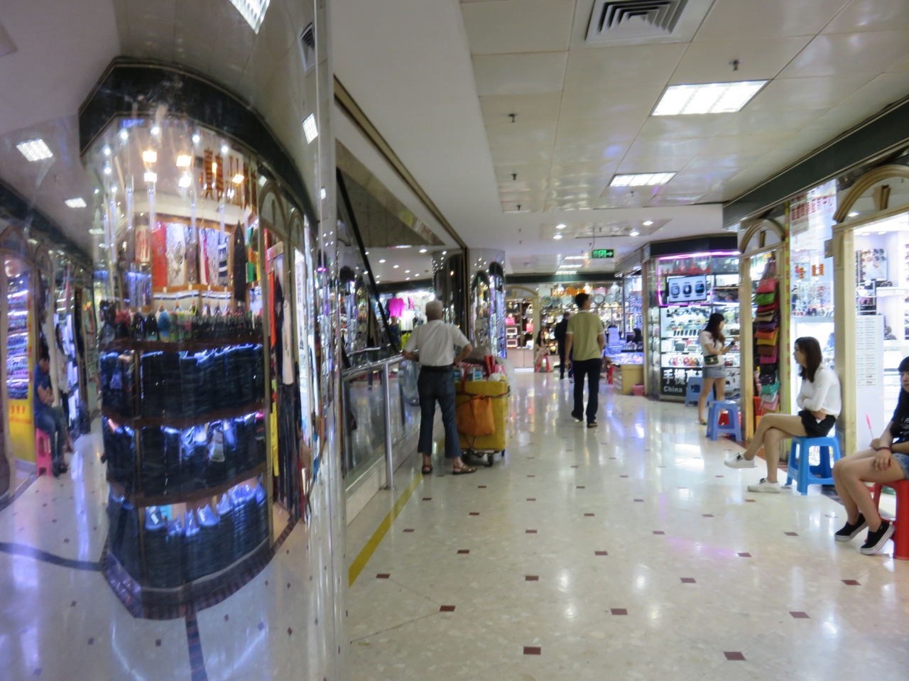 売り子のお兄さんが片言で「時計のニセモノある」、「なに欲しい」などと言ってかなりの距離付いてきました。でも、フロアーが変わるところまでは付いてこないところを見るとテリトリーがあるようです。ビル自体は中央に吹き抜けがあり、エスカレータもあります。各フロアーに専門店のような感じで店が並んでいますが、安いのか高いのか良く判りません。(もっともニセモノの定価があるのか疑問ですが)買物はせずに雰囲気を味わってきました。