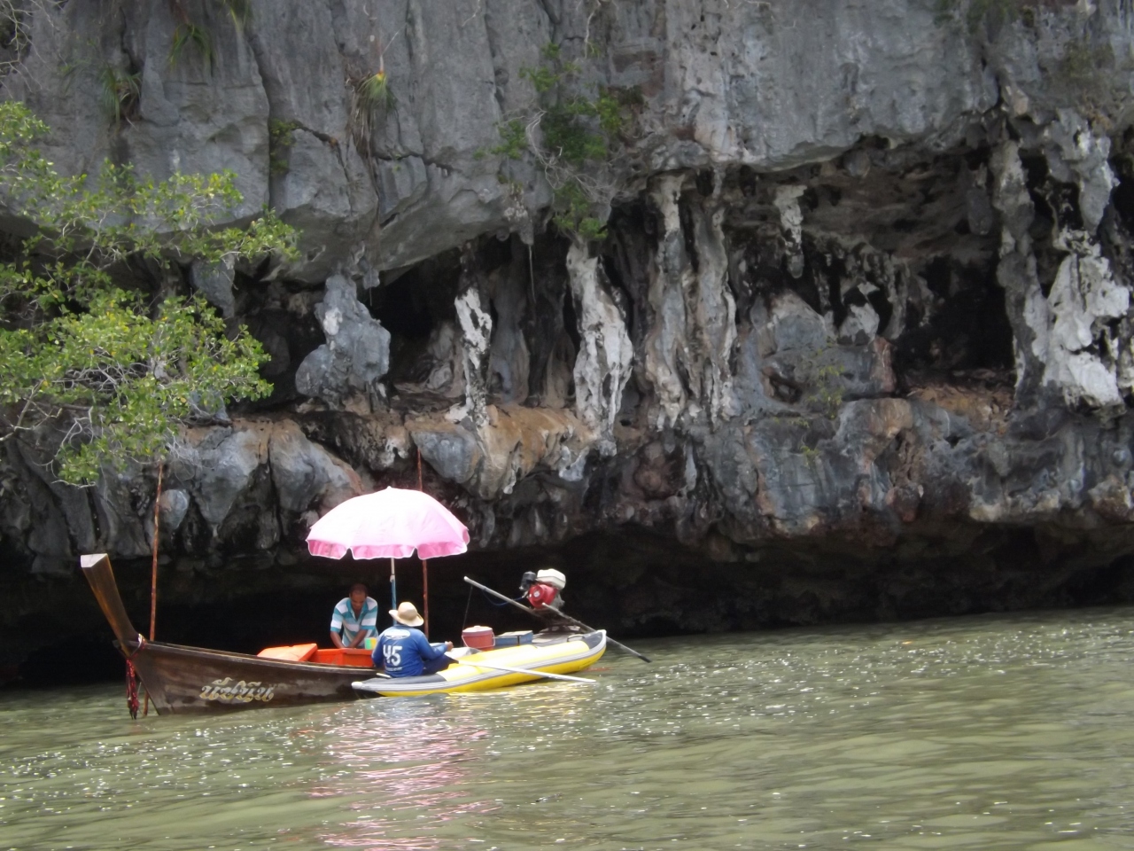 3日目の朝食を食べてから観光のスタートです。今日は、パンガー湾1日観光です。ホテルを午前8時に出発。最初、モンキーケイブとスワナクハ寺院を観光してからパンガー湾船着場に到着。ここから小型の船に乗船してパンガー湾をクルーズしました。景色は最高。ベトナムのハロン湾とイメージが少し似ています。海の桂林といえるでしょう。石灰岩でできた岩だそうですが、奇岩がたくさんあり、最高の景色でした。やっぱり、来てよかったです。