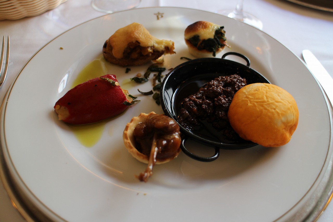 コースメニューの「MUSEUM MENU」を注文したところ、初めに食べきれないほどタパスの盛り合わせ的なものが登場。元旦のランチに食べたので異国にいてちょっとしたおせち料理気分に。そして何よりもメインディッシュの後に選んだ「バージンエクストラオイルのアイスクリーム」が特に絶品でした。ここへ来たら是非食べてもらいたい一品です。