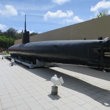太平洋戦争記念館 ビジターセンターの左てには実物の潜水艦が置かれており圧巻です。館内に入って入館料を払おうと聞いてみると、入場無料。