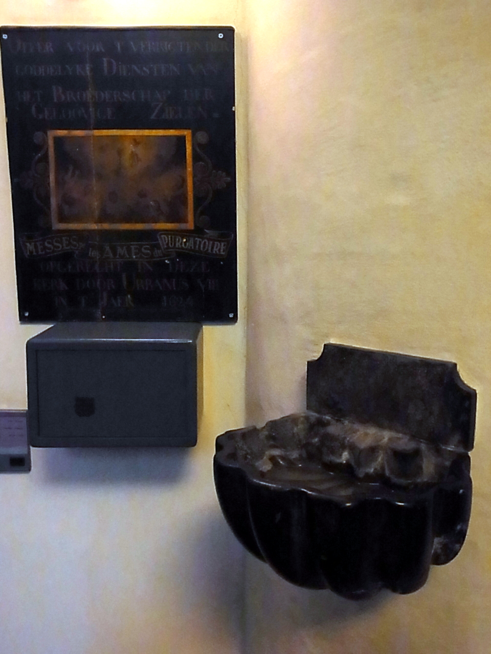 入口には、6人の悪ガキがインクを入れたという聖水盤があります。