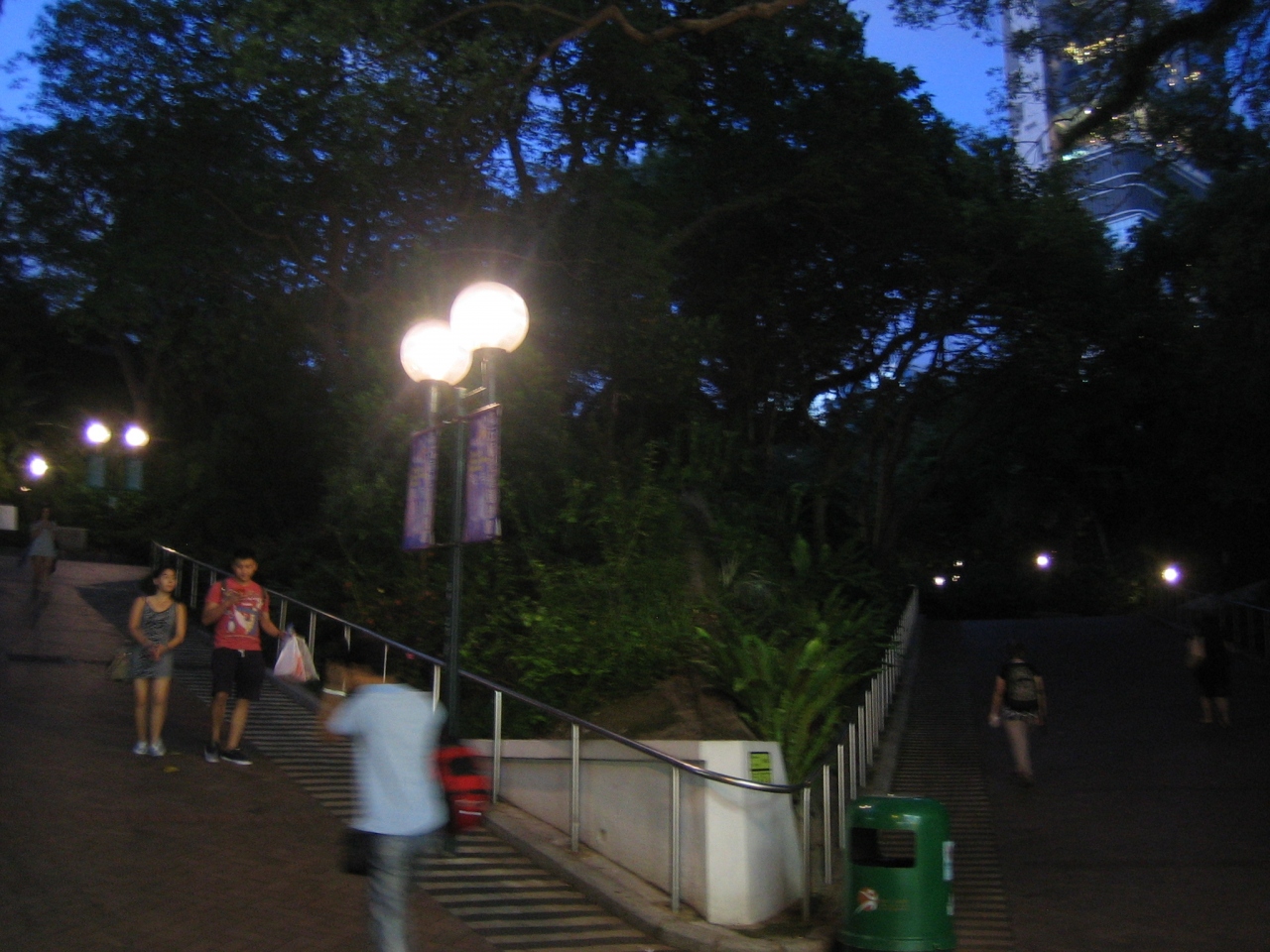 夜、九龍のフェリー発着場から佐敦駅近くのホテルに歩いて帰る時に左手にずっと見えていました。非常に広い公園です。夜でしたのであまり長時間いませんでしたが、特に寂しい感じもなく多くの人が歩いていました。早朝には太極拳や武術の練習をする人もみられるらしく、是非明るい時にも行きたかったです。