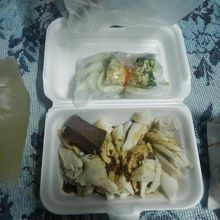 今回は鶏肉120バーツとライス1つとバーツをテイクアウト。スープは2杯分はあるものが付いてきた。宿でビールを飲みながら食べる。