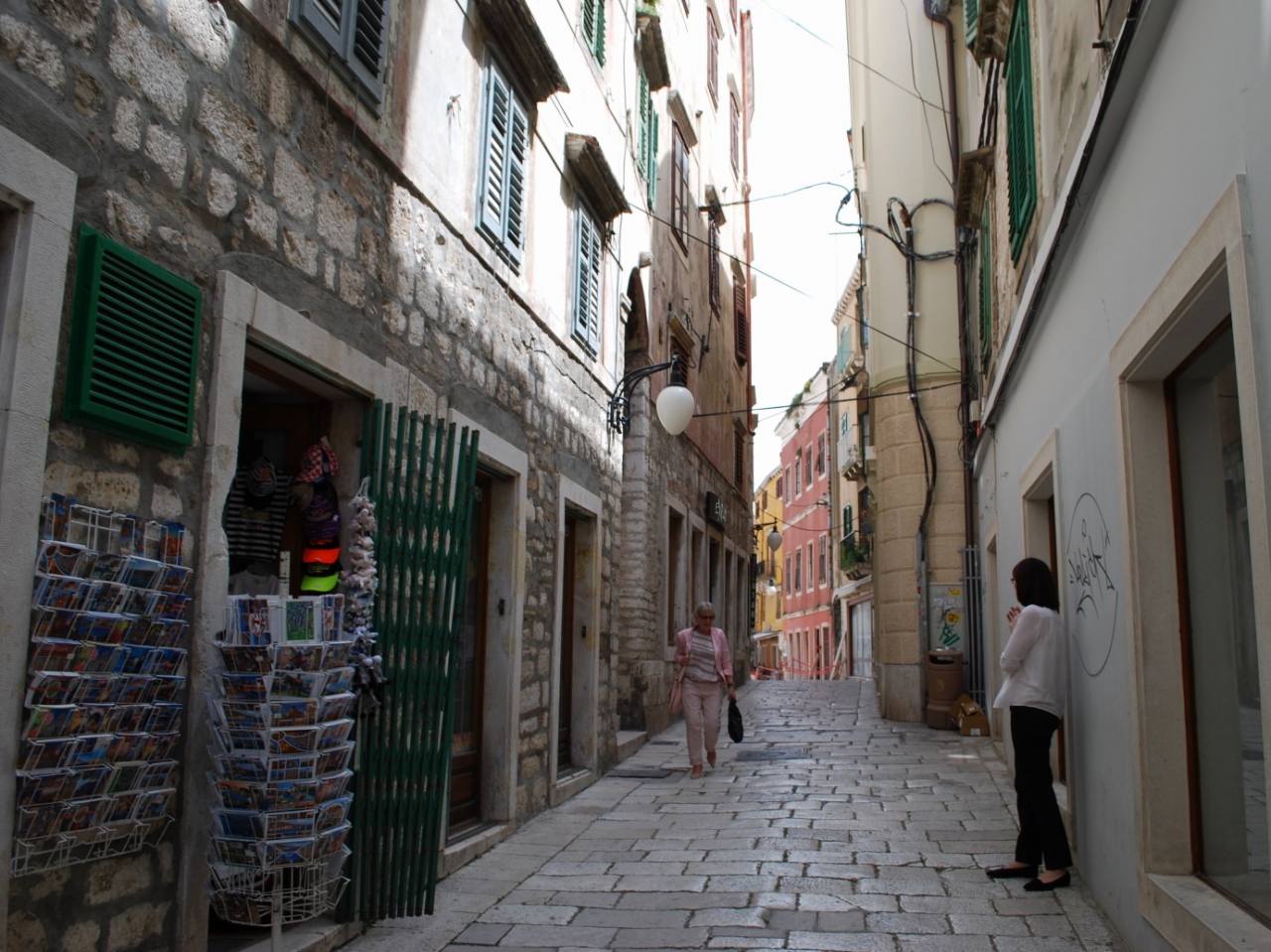 道のハズレにあるのが劇場。そのすぐ外には昔の城壁の跡。噴水が心地よい公園を抜けると、聖フランシスコ教会。その前には、クロアチアの偉大な王、ペタル・クレシミル4世の銅像が立っています。