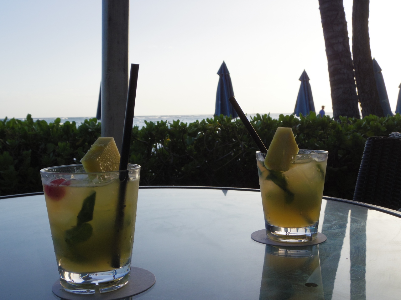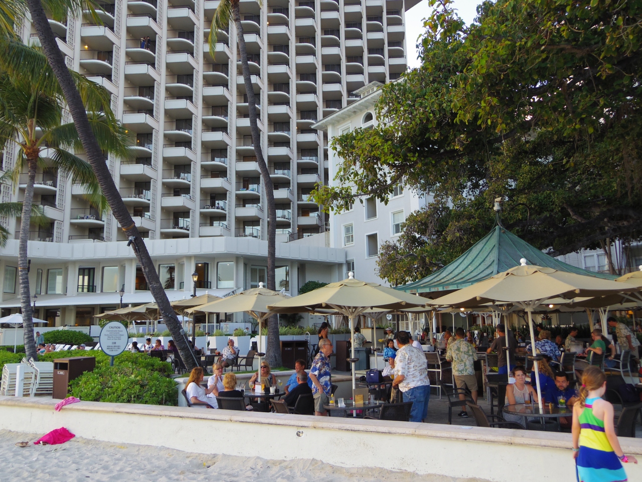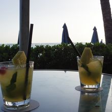 運よくビーチ側の席に座れ夕暮れのビーチを