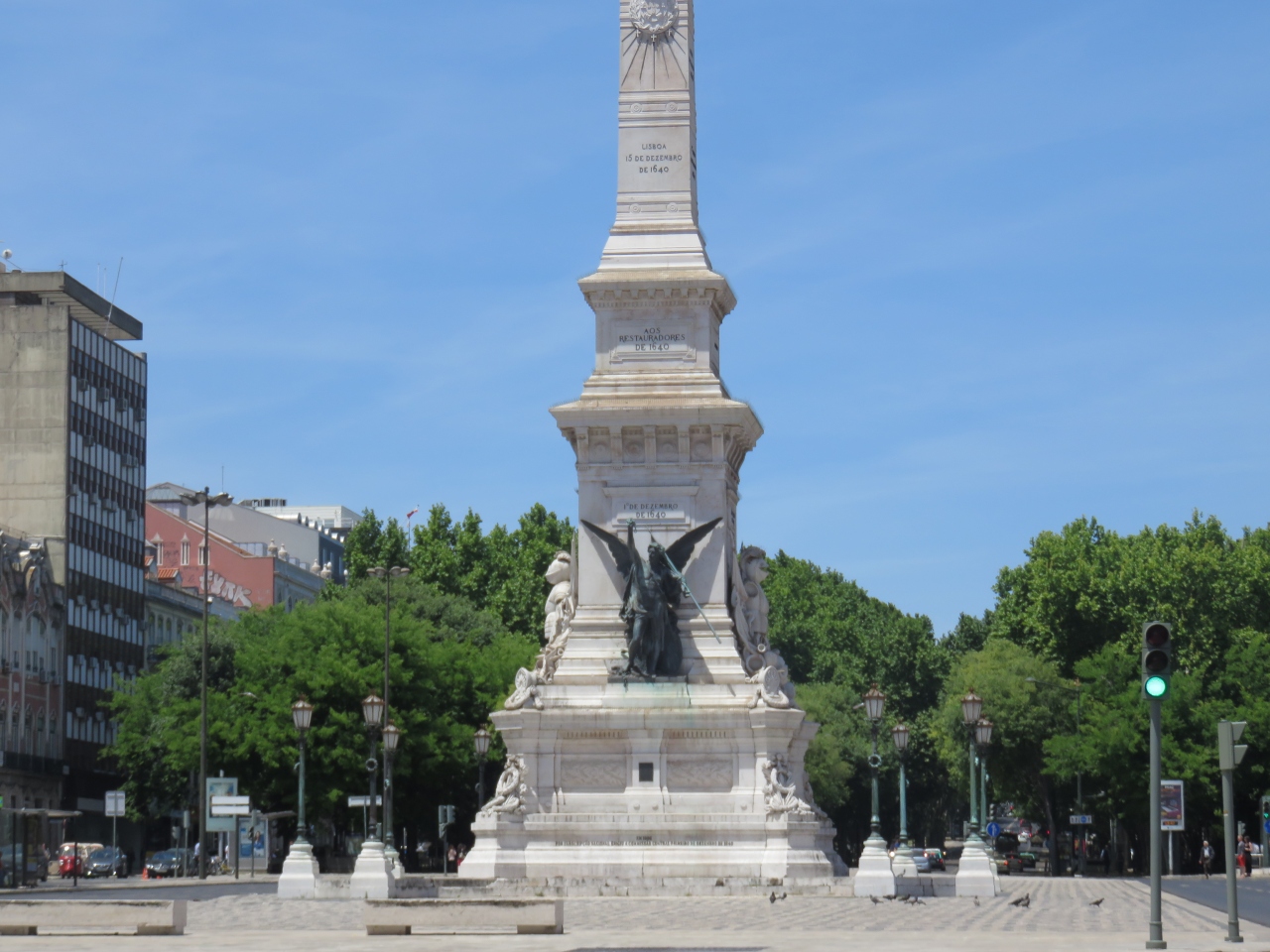 ロシオ駅前から北に伸びた大通りで、長く伸びた緑地帯や記念の石柱