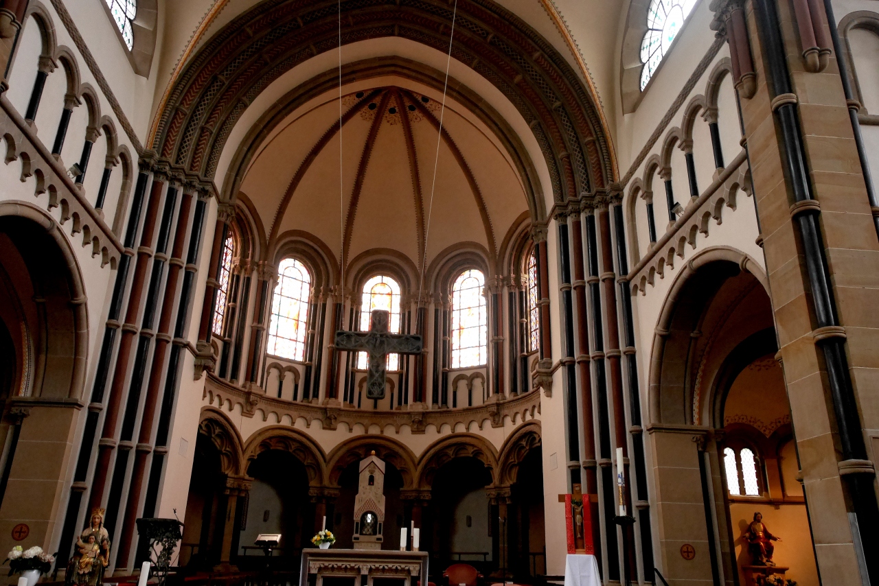 19世紀末からの新しい教会.コブレンツの1944年11月6日の爆撃で完全に破壊.1953年再建,さらに改装を繰り返してきたようだ.蝙蝠天井が印象的な,ステンドグラスがモダンな教会だった.この横にDB Koblenz Stadtmitte駅がある.コブレンツ中央駅まで,徒歩10分くらいなので疲れるようならここから列車に乗るとよい