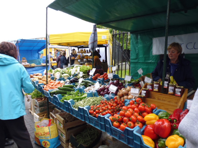 聖ニコラス教会の脇で毎週土曜日に行われている市場で、食べ物、魚屋、工芸品、パン、はちみつなどさまざまなものを販売しています。