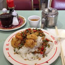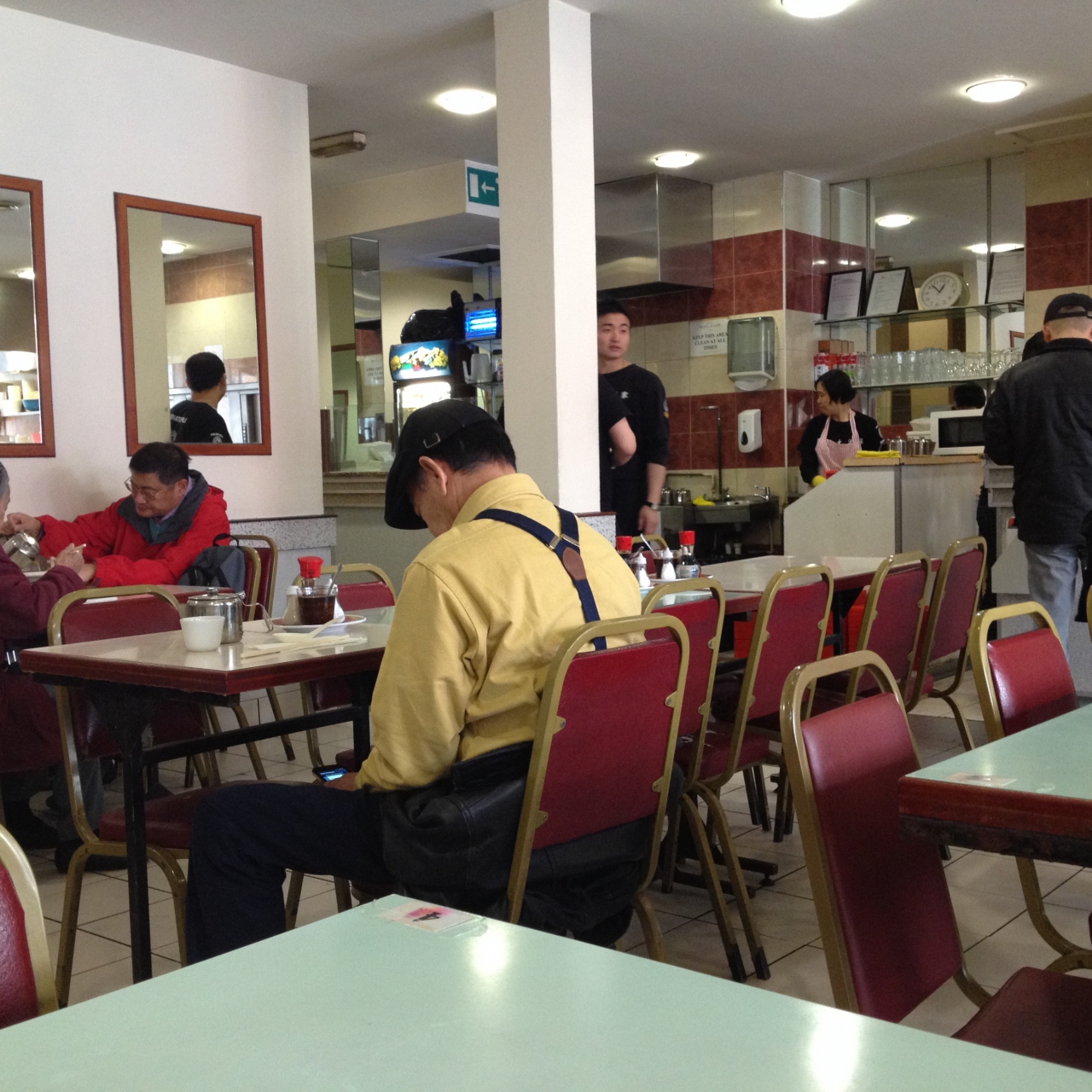 チャイナタウンのリーズナブルで美味しいお店として紹介があり、行ってみました。なんでもかつて世界で一番接客態度の悪い店としてギネスブックに載ったとか、どんなに雑な接客なのだろうと思ったのですが、丁寧とは言えないまでもそれほどでもありませんでした。お店の前でメニューをみていると次から次へと団体・個人問わず入って行って、このお店の人気がよく分かりました。入口を入ってすぐの1Fは一人客が多く、相席になってもみな黙って自分の料理を食べてます。私もそんな客の一人として、たのんだのがエビの塩炒めごはんのような料理。あっさりしているわりにニンニクがきいて大変美味しかったです。値段は千円しなかったので非常に物価の高いロンドンではかなり安いと思います。ジャスミンティーもサーブされて大変満足でした。お勧めです。