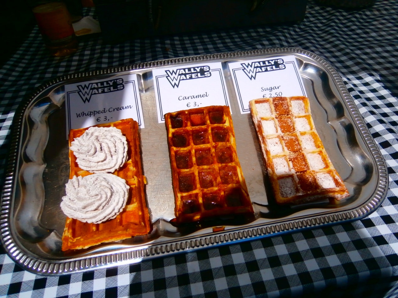 日本の商店街で見かけそうな服やさんをはじめ、お土産や、ワッフルや、ジュースや、花やなどいろんな店が通りの両脇に出店していました。ただし、人はかなり多いのでスリには要注意です。匂いに誘われ立ち寄ったワッフル屋さんはトッピングの種類が多く、おいしかったです。