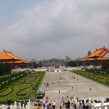 中正記念堂は初代総統の蒋介石を顕彰して作られた施設で、台湾の三大観光名所の一つです。蒋介石が座っている姿の銅像を納めている記念堂を中心に広大な広場や公園があります。広場の左右には、この国家戯劇院と国家音楽廰です。記念堂に向かって右が国家戯劇院、左が国家音楽廰です。音楽廟ではコンサートが開かれるようで、準備中でした。クラシカルな建物で、外観だけ見ているだけでも感動します。