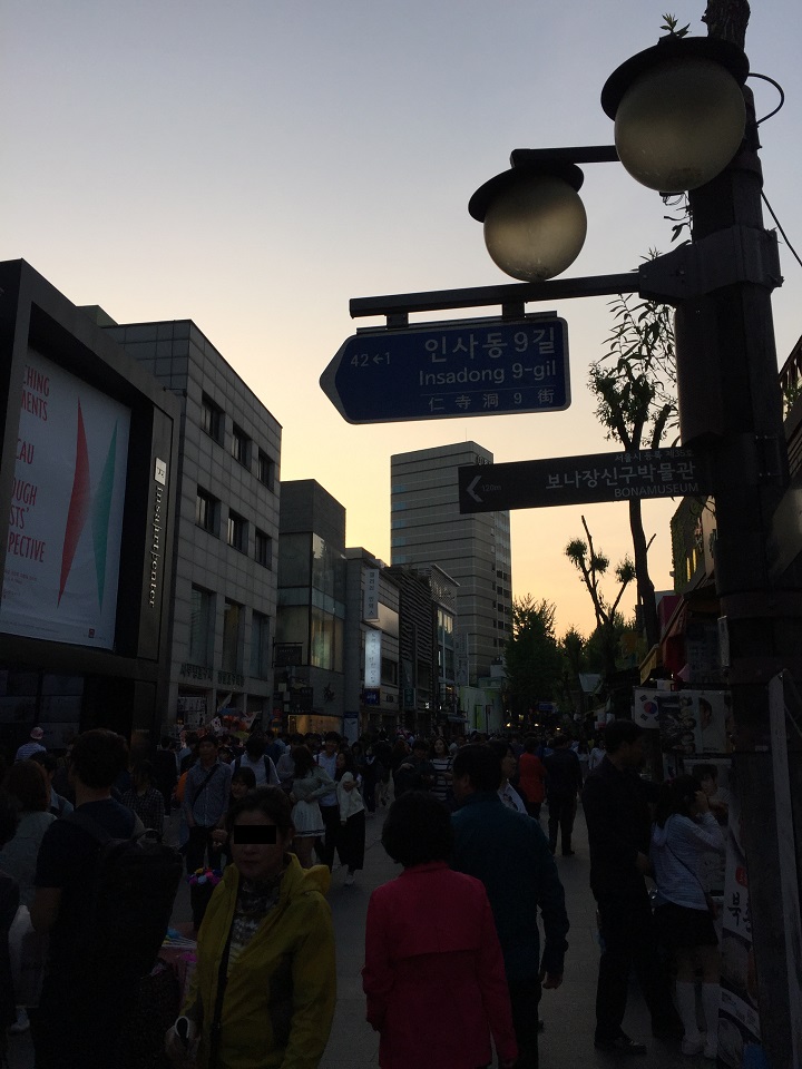 骨董のギャラリーなどが並ぶ区画が有名でございますが、最近は若者向けのお店が目立つ街になっておりまして、明洞と同じような化粧品のチェーン店ばかりの町並みになっておりました。