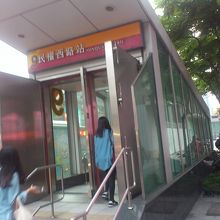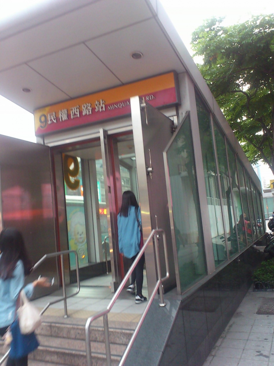 台北駅から宿泊するホテルのホテルサンルート台北まで行くのに地下鉄を利用し、降りた駅です。地下鉄の淡水線という路線で、3つ目の駅です。もうひとつの中和新盧線と交わっている乗り換え駅です。駅の名前のついた民権西路という大きな道路に出ます。9番出口に出るとホテルまですぐでした。