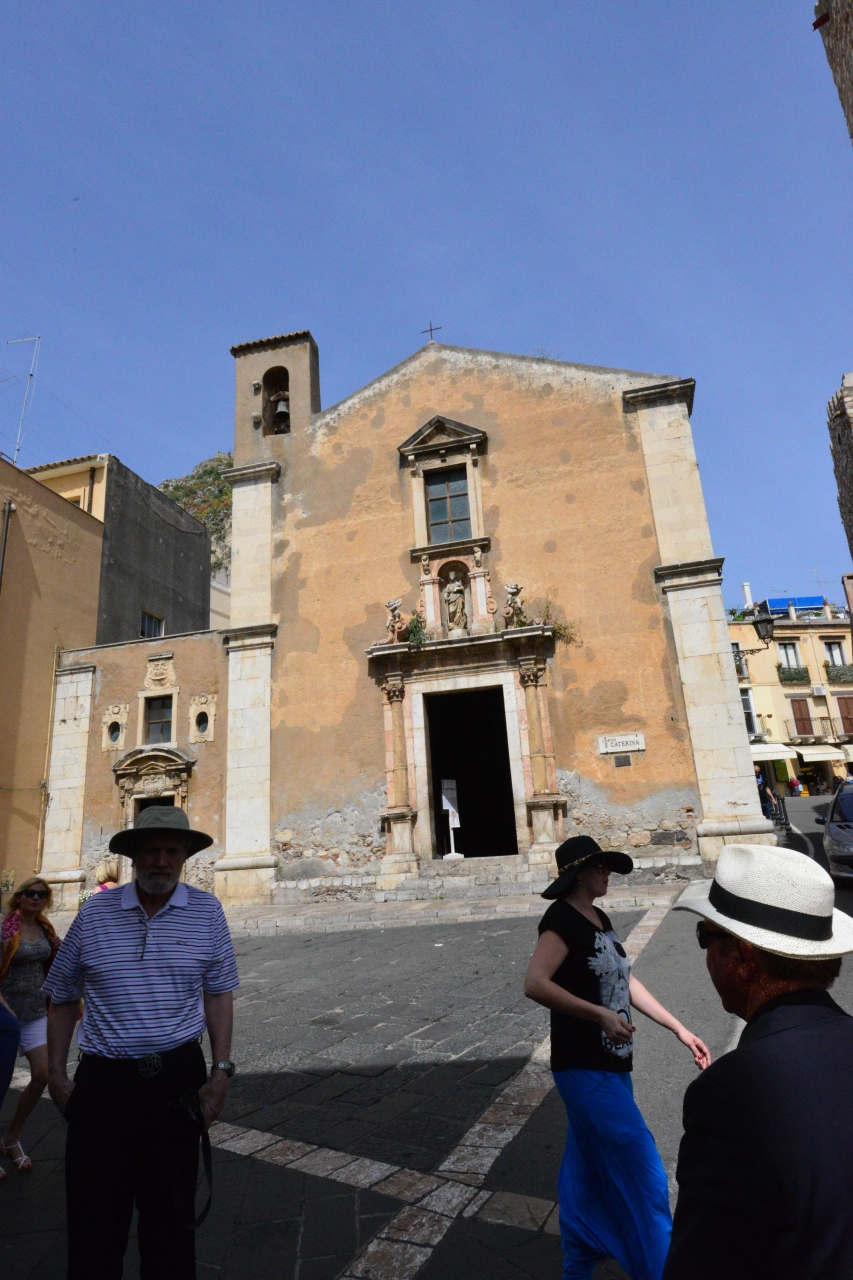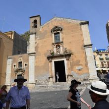 メッシ―ナ門から入ってウンベルト一世通りを少し歩くと、右側にある教会です。ファサードの上には聖カタリ―ナの像が掲げられています。小さな教会ですが、扉が文字通り開かれていて敷居が低いのか、大勢の観光客が入っていました。