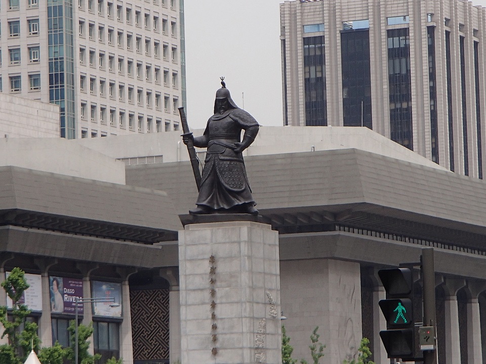 世宗大王の坐像が有名でございますが、その前方の位置の高い台座の上に建つ立像でございます。