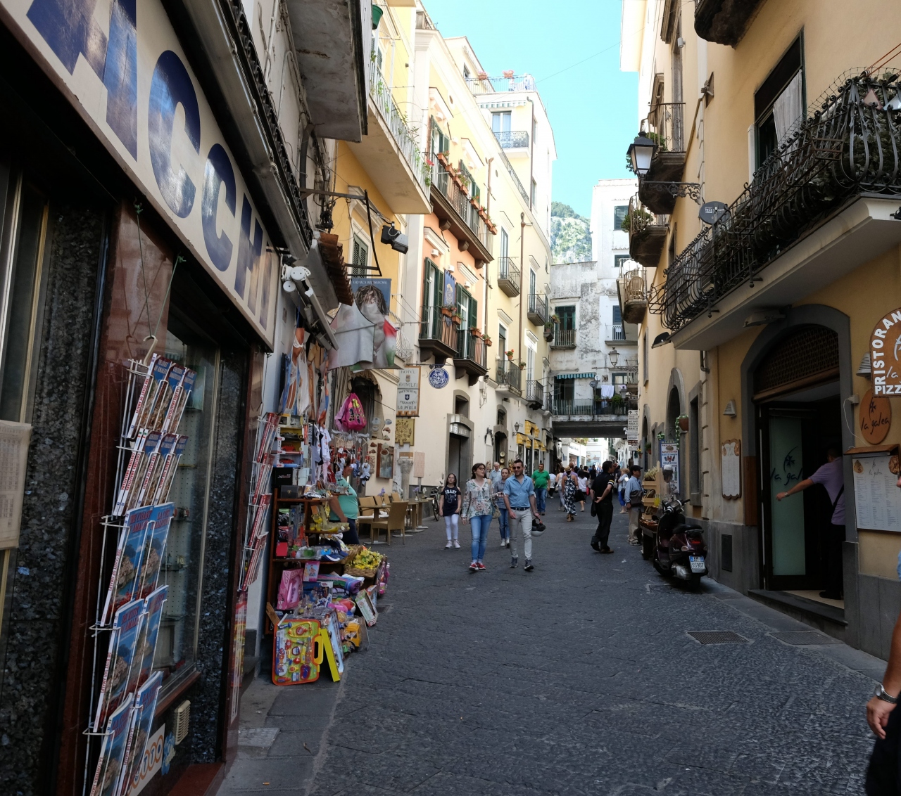 アマルフィのメインストリートで、お土産物屋さんなどが軒を連ねていますが、アマルフィ自体小さな町なので、この道もそれほど長いものではありません。むしろ、ちょっと横に入った路地や階段のほうが、趣があるような気がしました。