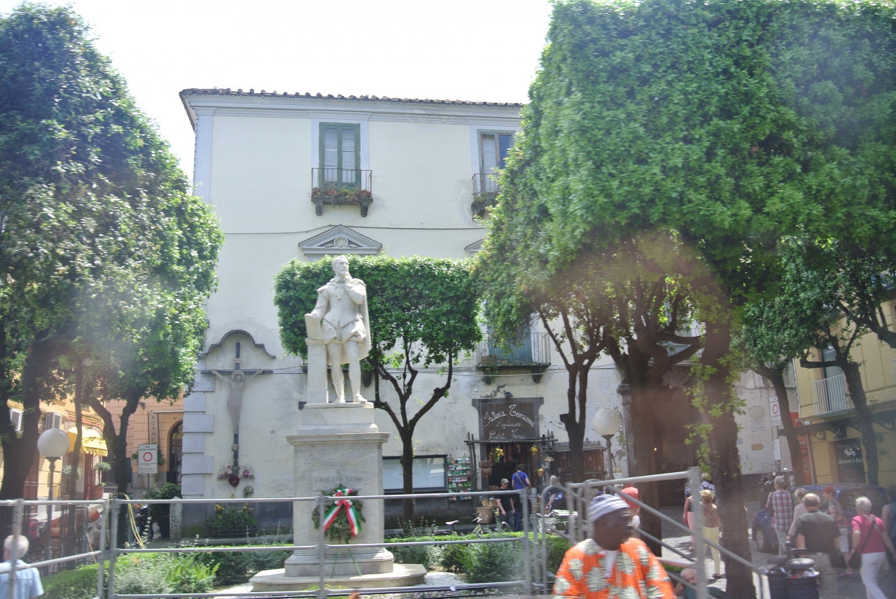 ソレントの街の中心地です。タッソはソレント出身の詩人で、16世紀の後半にイタリアの各地で活躍し、その数奇に満ちた生涯はゲーテが物語に取り上げるなどしています。その詩人の像が置かれています。多くの観光客が行きかい、活気に満ちていました。