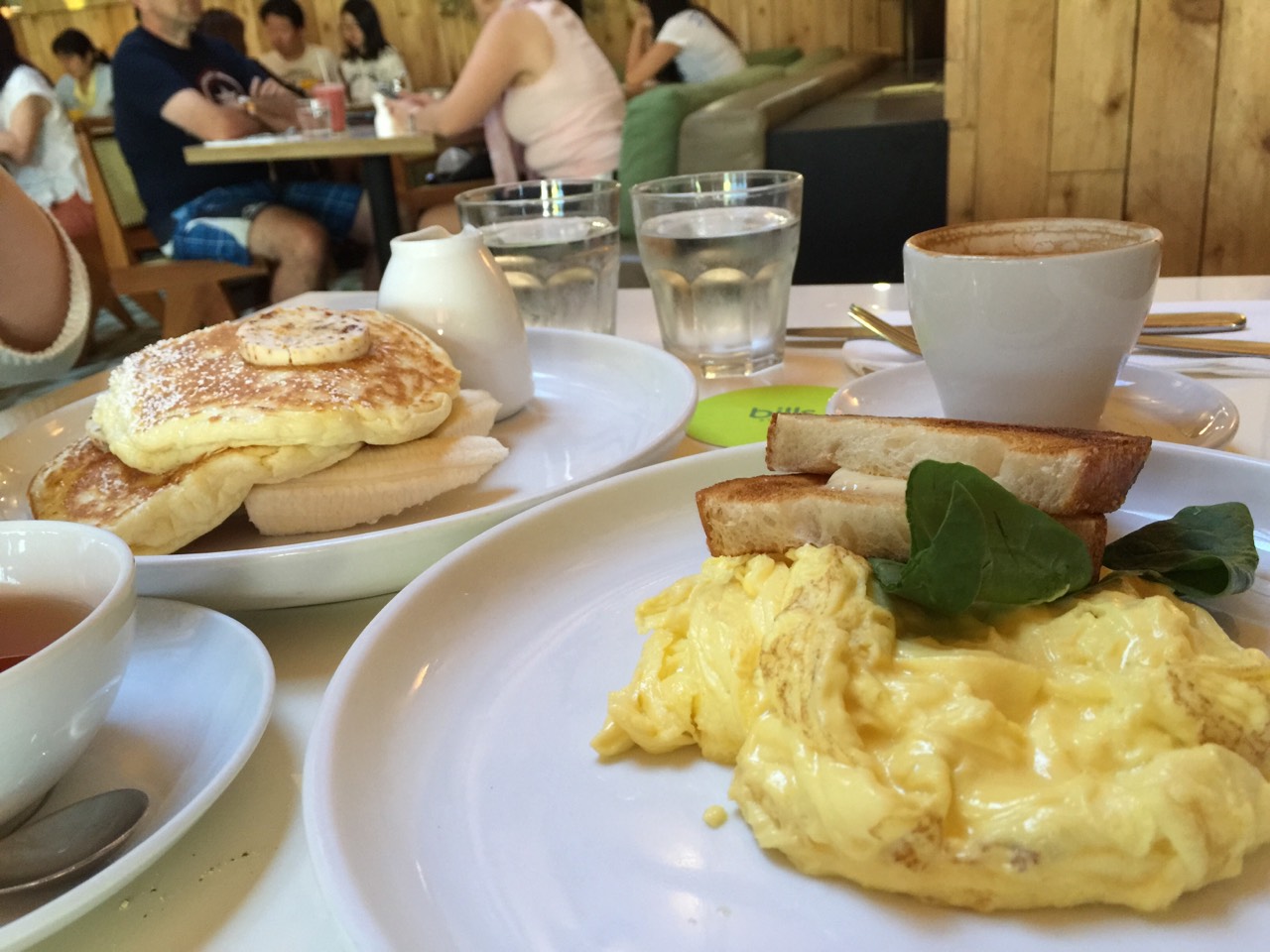 日本では混んでいるかな?となかなか行く機会がありませんが、たまたま朝通りかかり、待ち時間もなく入れそうだったので利用しましたが、満足な朝食時間を過ごせました。鉄板のパンケーキとスクランブルエッグをいただきましたが、本当に美味しかったです。
