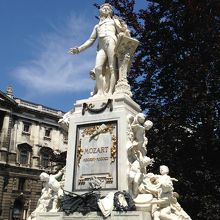 像の前、花壇はト音記号が形どられていました。市立公園のシュトラウス像は見つけにくかったですがモーツアルト像はわかりやすい場所にあります。青銅像や石像は鳥の糞や雨で劣化が目立ちますが 新しいのか真白できれいです。