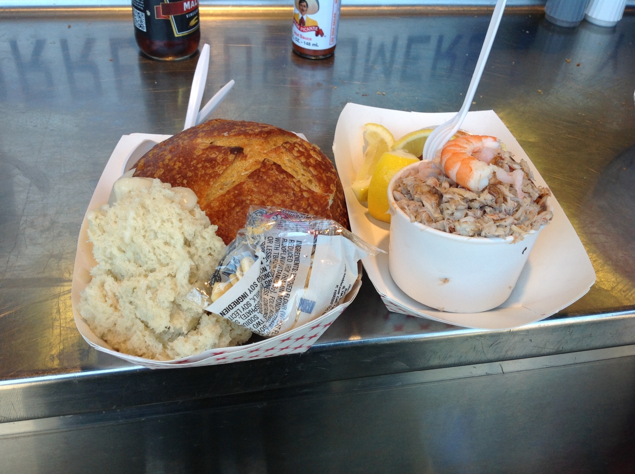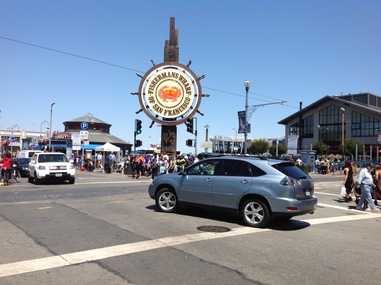 サンフランシスコを代表する観光地。海沿いのジェファーソンストリートを中心に、ショップやレストラン、博物館、お土産物屋さん、ホテルなどが並んでいます。ケーブルカーのパウエル-ハイド線の起点があるハイドストリートか、Fラインのフィッシャーマンズワーフが最寄駅です。カニのシンボルマークの通り、周辺にはカニやシーフードを販売する屋台がたくさんあり、蟹が並んでいる様子に圧倒されます。茹でカニ以外にもシーフードサラダ、シュリンプカクテル、さらにはサンフランシスコ名物のサワーブレッドに入ったクラムチャウダーなどが売られており、どこの屋台でもほぼ価格は同じです。サンフランシスコの気候は真夏でも20℃強で涼しいこともあり、いつでも温かいクラムチャウダーを食べることができます。