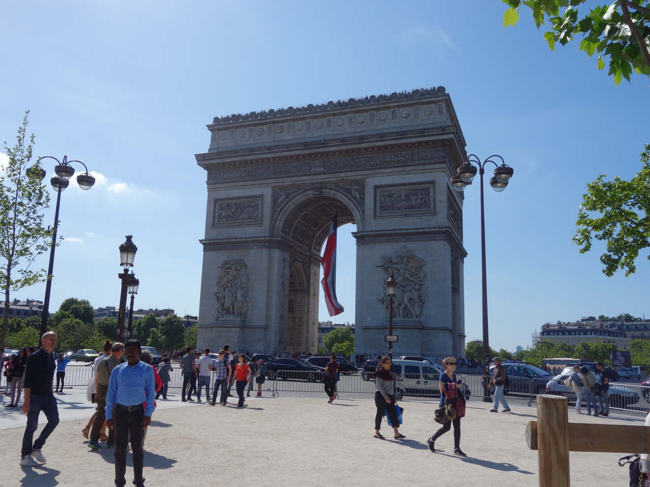 エッフェル塔とともにパリを象徴するモニュメントのひとつです。知らない人はないでしょう。周辺は外国からの観光客だらけです。すなわち,スリの働き場所でもあります。おたがいに注意しましょう。自動車にも注意を。