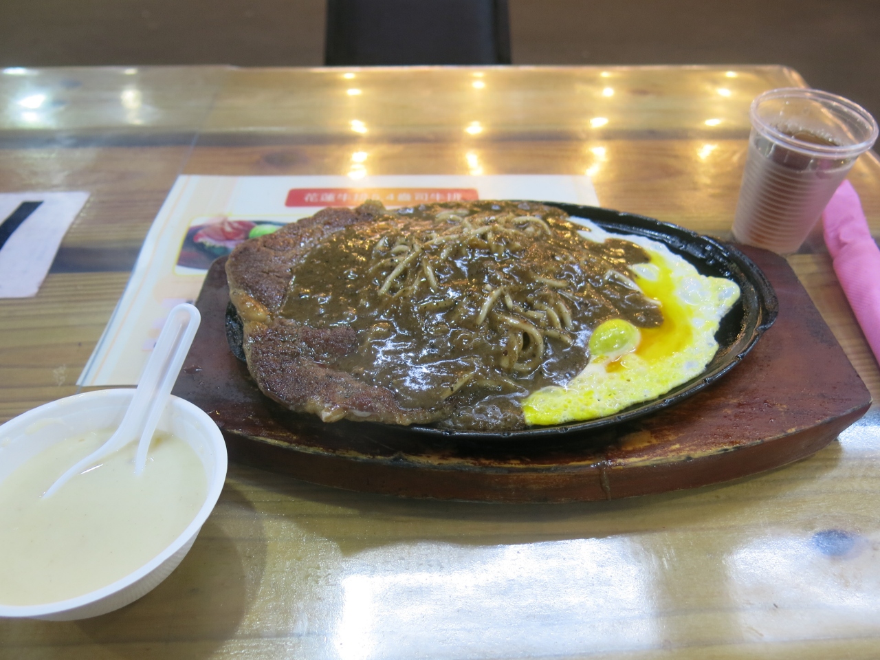 花蓮夜市でたくさんお店が出ている牛排(台湾式ステーキ)に挑戦しました。これはこれでありだなと思いました。