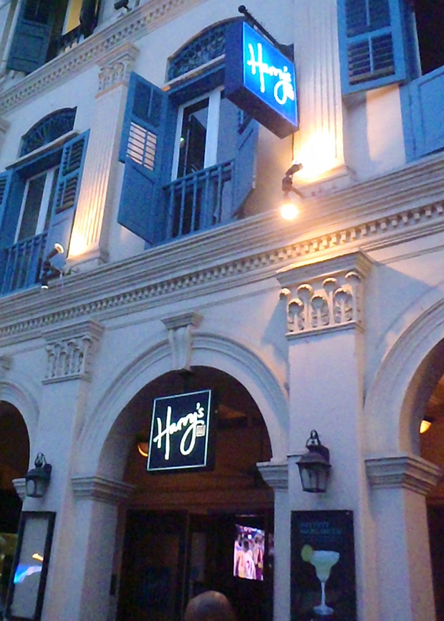 シンガポールリバーサイドのナイトスポットとして有名なボートキー、MRTラッフルズプレイス駅から徒歩5分でボートキーに入ったら2軒目のバーです。