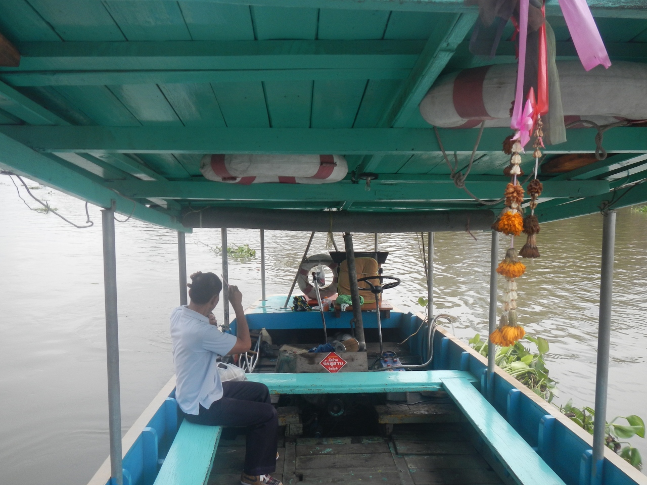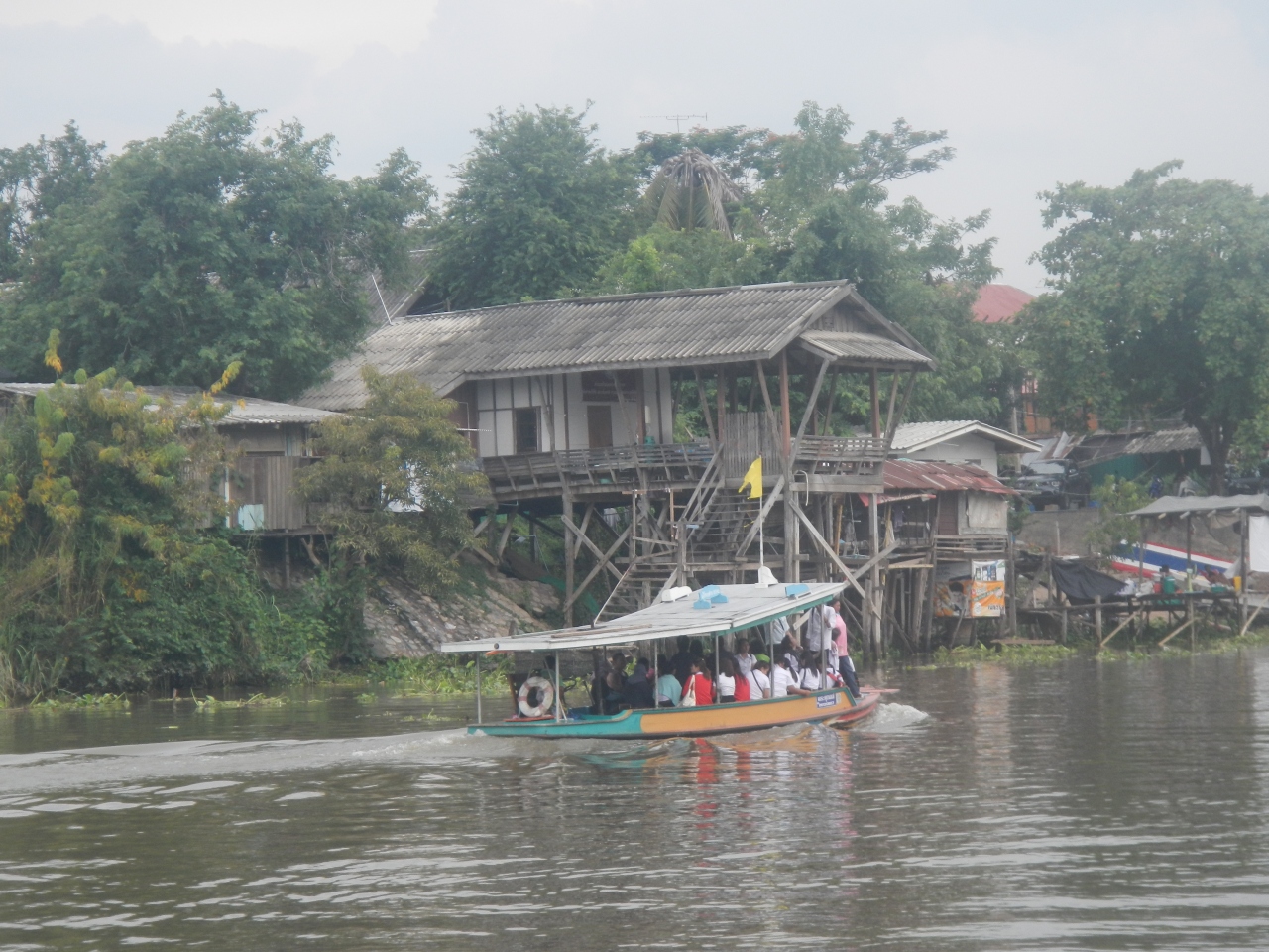 アユタヤ駅前のパーサック川の渡し船に自転車とともに乗った。人の料金は5バーツ。自転車の料金は覚えていない。橋を渡ろうとするとかなり遠回りになるので助かった。だが、降りたあと、道路までは階段なので自転車を持ち上げなければならなかった。