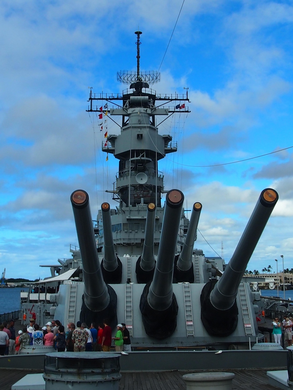 太平洋戦争が始まった真珠湾に、太平洋戦争の降伏の調印が行われた戦艦ミズーリが置かれています。湾岸戦争まで参加してから退役、アメリカの歴史に参加してきた軍艦です。