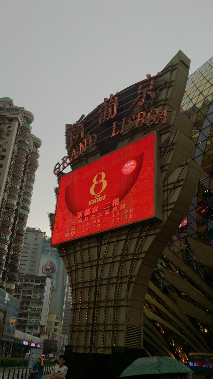 隣のホテルリスボアに宿泊して利用しましたが、こちらへはデッキでつながっておりダイレクトに行くことができましたので便利です。カジノリスボアと比較するとこちらのグランドリスボアのカジノのほうが洗練された雰囲気を感じました。カジノ本来の設備についてはルーレットやバカラ、スロットなど一通りあって、客層も本格的にカジノに興じているギャンブラーらしき人は意外に少なく、自分のように少額の掛け金でちびりちびりやって、雰囲気そのものを楽しんでいる人や、ぶらぶらとのぞきに来ている人たちが混じっている状態で、観光客にとってはマカオらしさを感じるには楽しい場所だと思います。また、入るのに躊躇する感じはほとんどなく気軽に入場できるので、散歩ついでに立ち寄れると思います。
