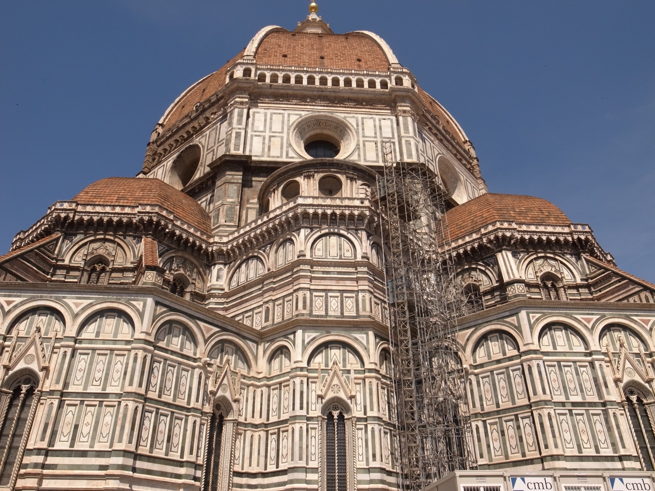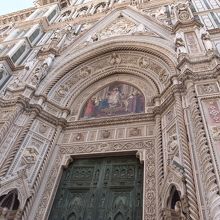 名実ともにフィレンツェの中心となる聖堂がこちらのサンタ マリア デル フォーレ大聖堂。フィレンツェで一番大きいのでとにかく目立ちますし、道に迷った時の目印になります。遠くからみるのもいいですが、大理石をふんだんに使ったファザードのディテールの美しさには驚嘆する。