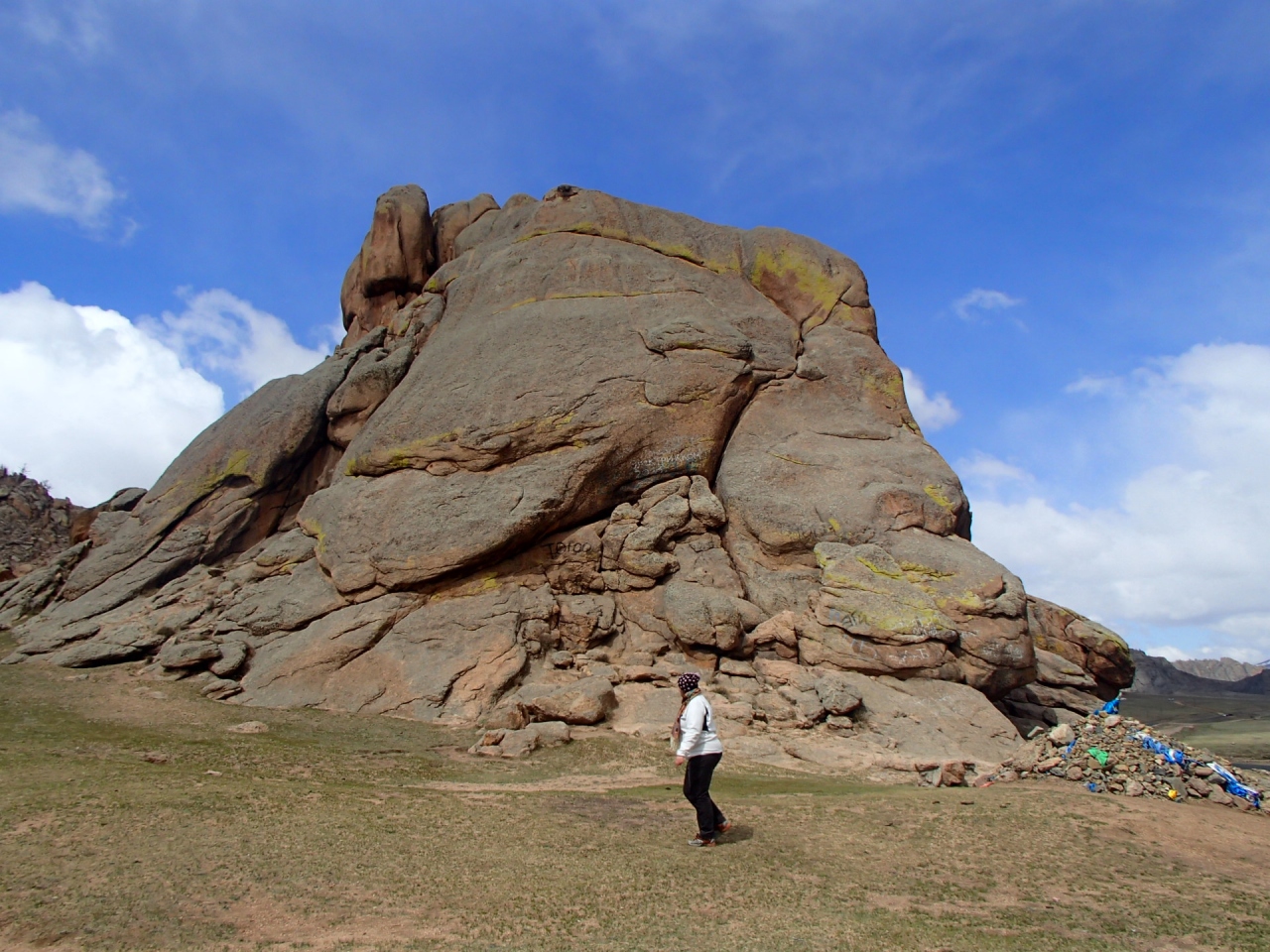 GHを10時前に出発。11時半、ガメラのような巨大な亀石近くのツーリストキャンプに到着。ゲルでお茶を振る舞われたり、付近を散策したり、12時に昼食を出されたので少し頂き、13時に乗馬から戻ったあとでさらに食べたり。昼食は、あまり美味しくない羊肉の餃子と、ニンジンの酢漬け。