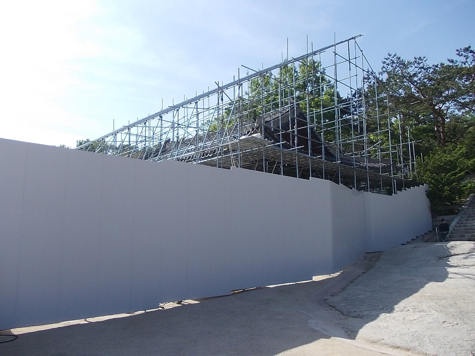 昌慶宮にございますこちらの建物は、2015年5月現在修復中ということでございまして、写真の通り白い壁に覆われておりました。