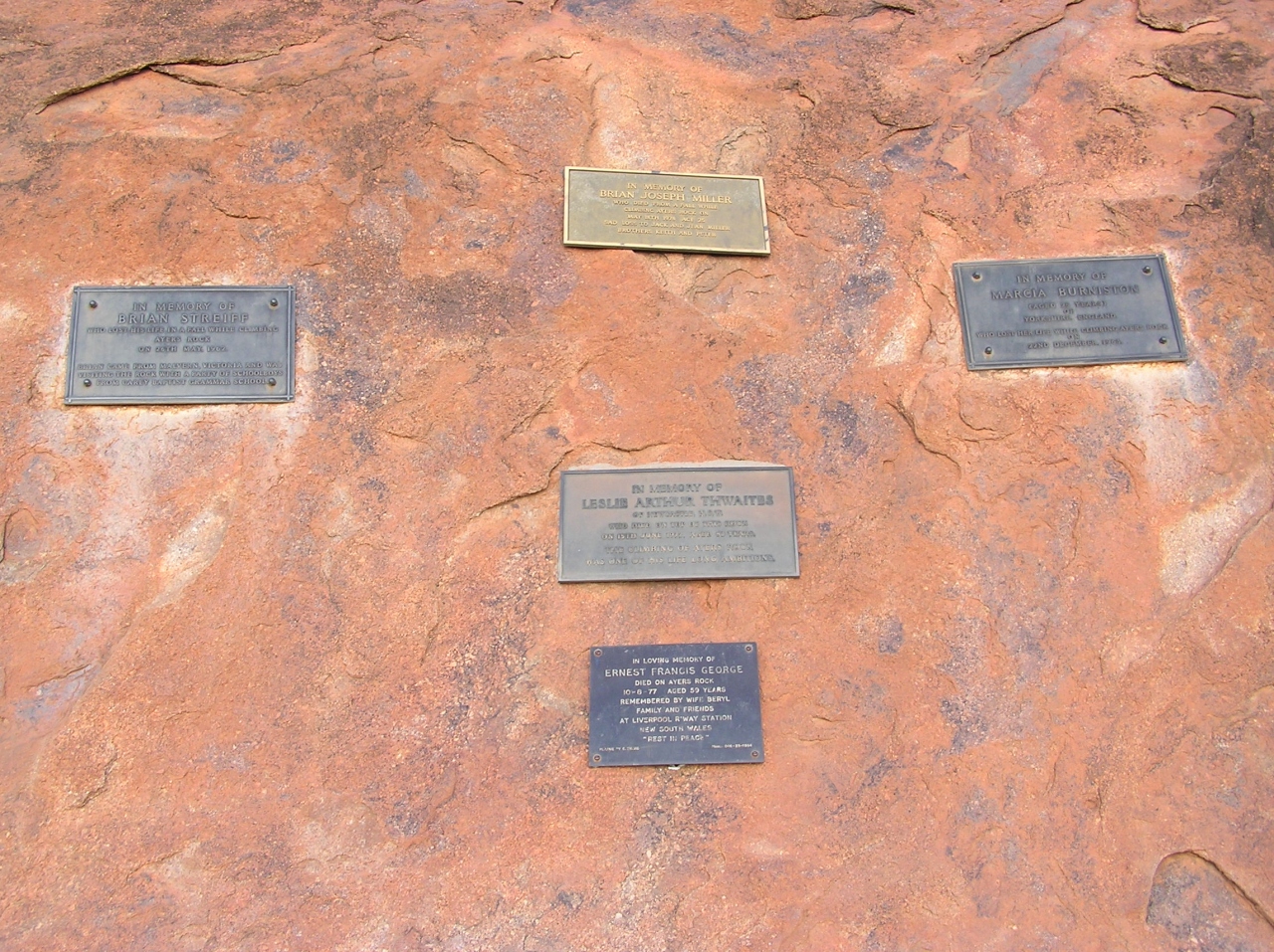 転落して死亡した5人のメモリアル・プレートが設置されている。