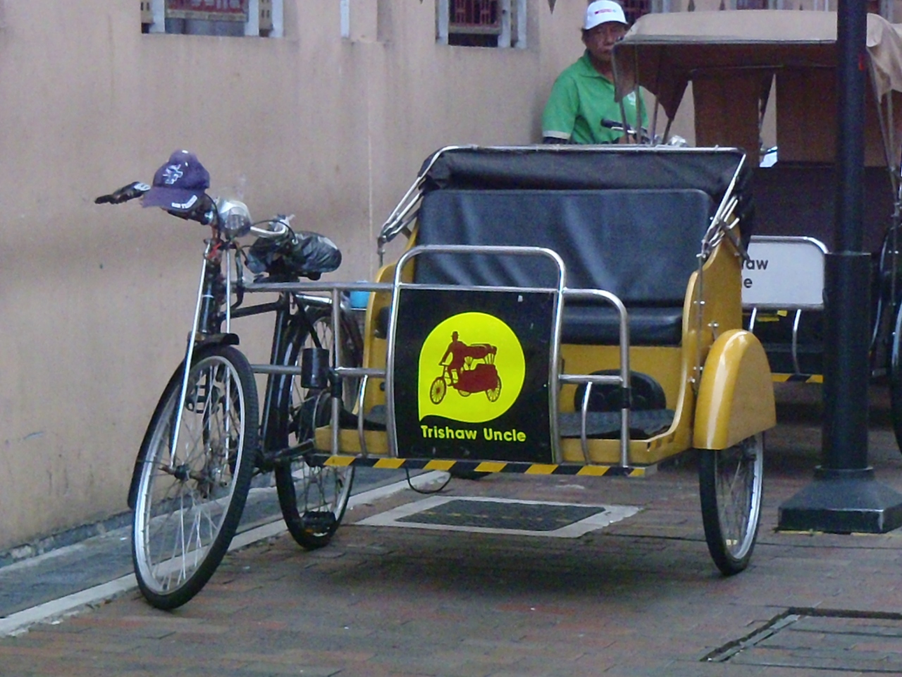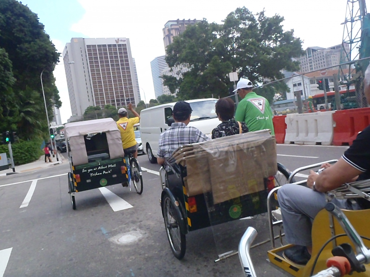 シンガポールの移動手段として使われていた人力車のような乗り物の横に自転車を付けたスタイルの乗り物です。