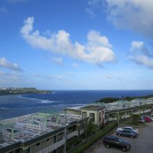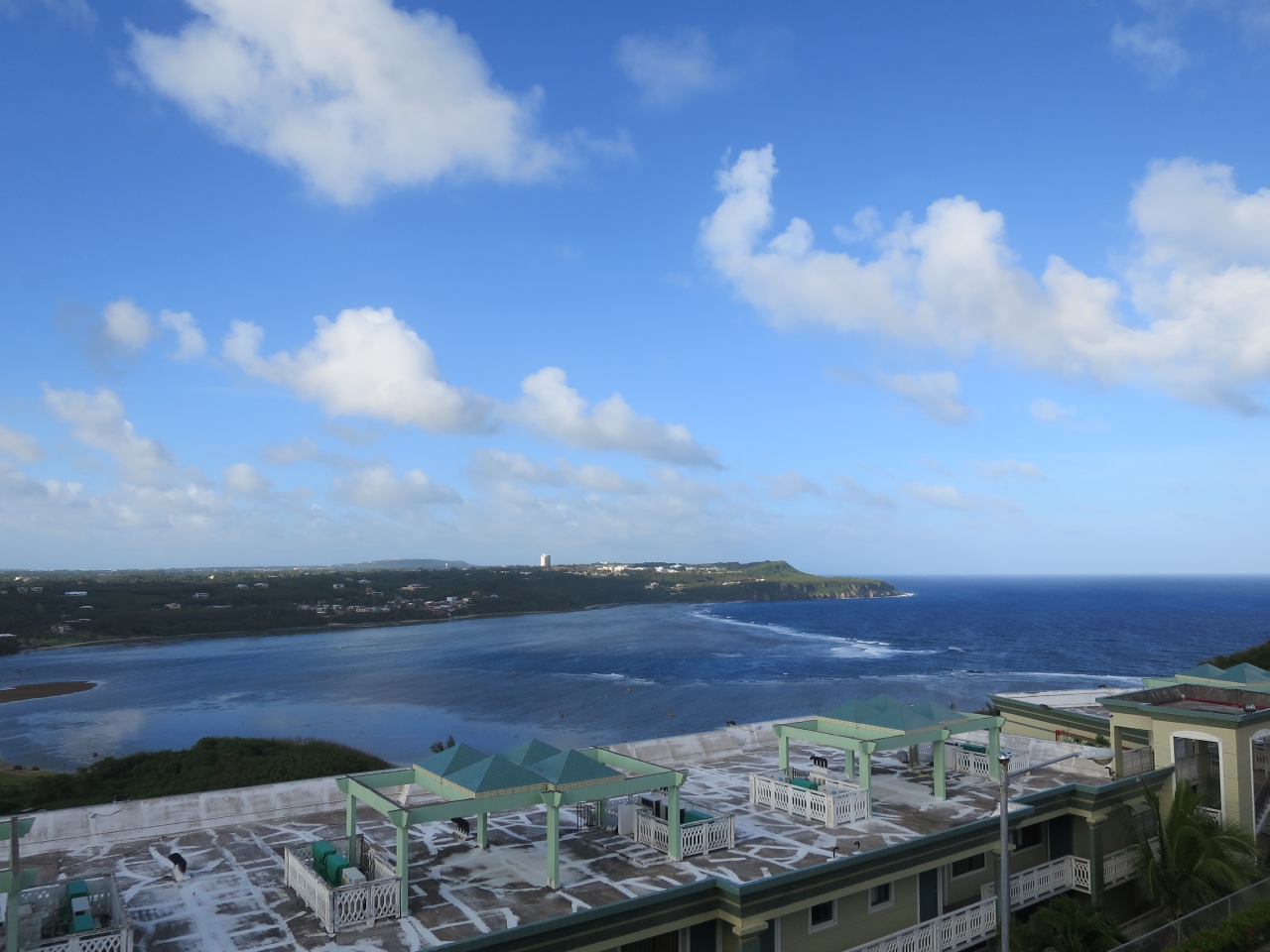 展望台に上がると確かにパゴ湾とリーフを一望できるのですが、目の前のホテルの様な建物が邪魔で、そんなに景観は良くはありません。